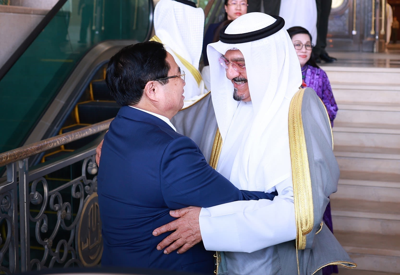 在会见越南政府总理范明正时,科威特王储谢赫萨巴赫·哈立德·萨巴赫表示,科威特为海湾地区首个与越南建立外交关系的国家,过去半个世纪以来,两国合作取得了丰硕成果。