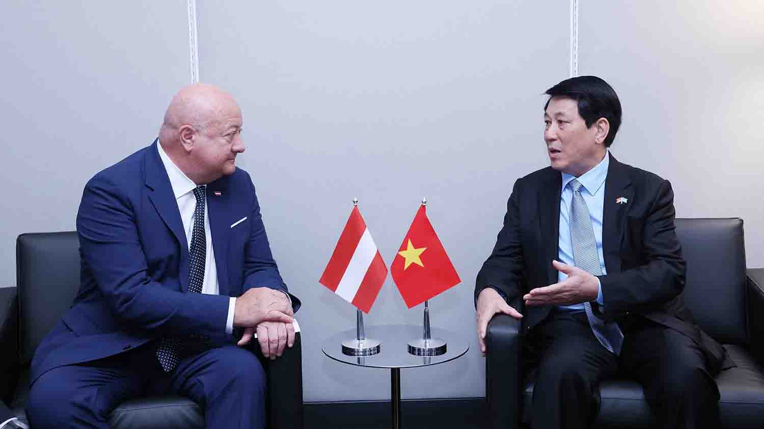 越南国家主席梁强会见奥地利总理克里斯蒂安·施托克尔。(图片来源:越通社)