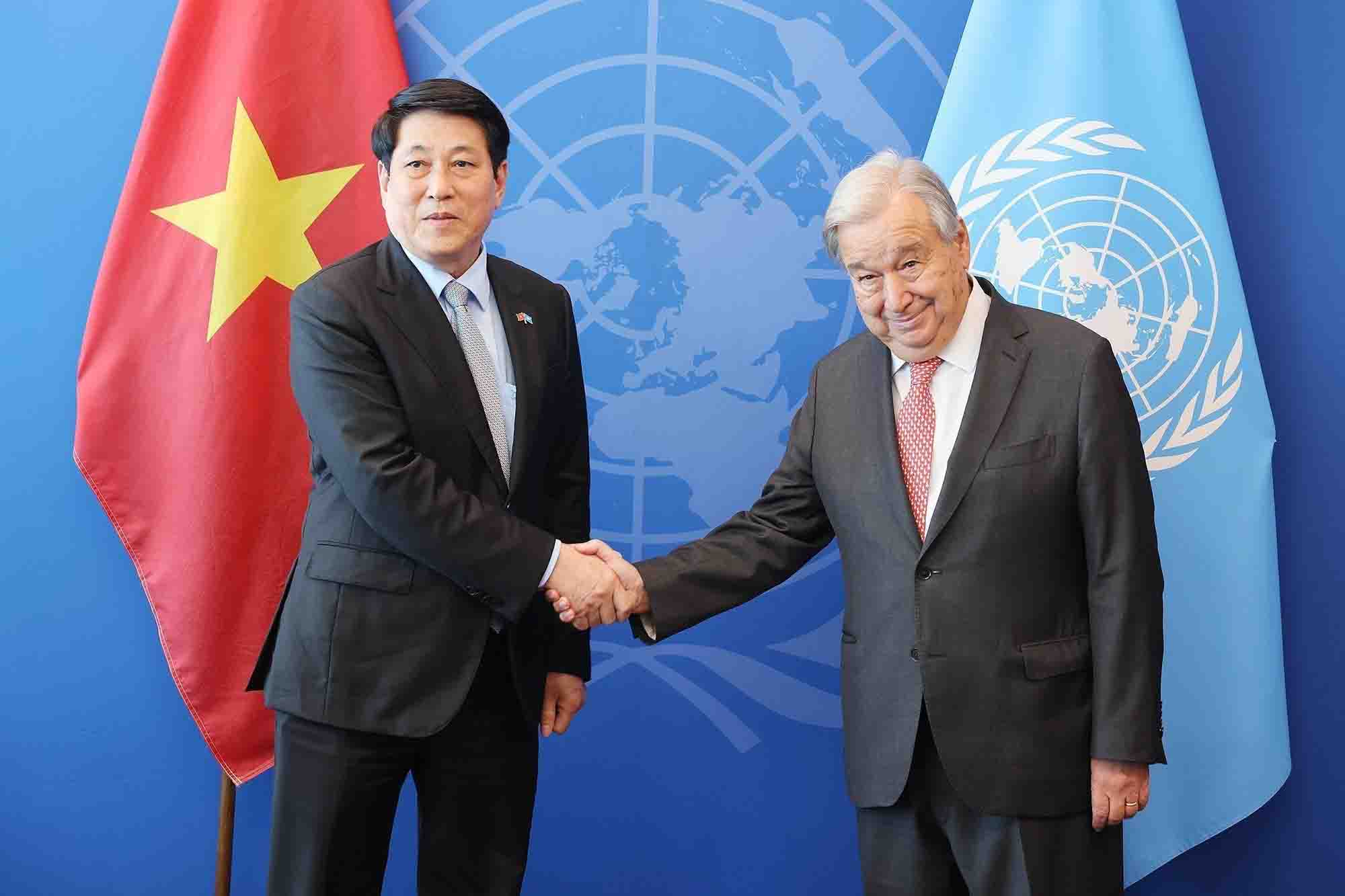 国家主席梁强会见联合国秘书长安东尼奥·古特雷斯。(图片来源:越通社)