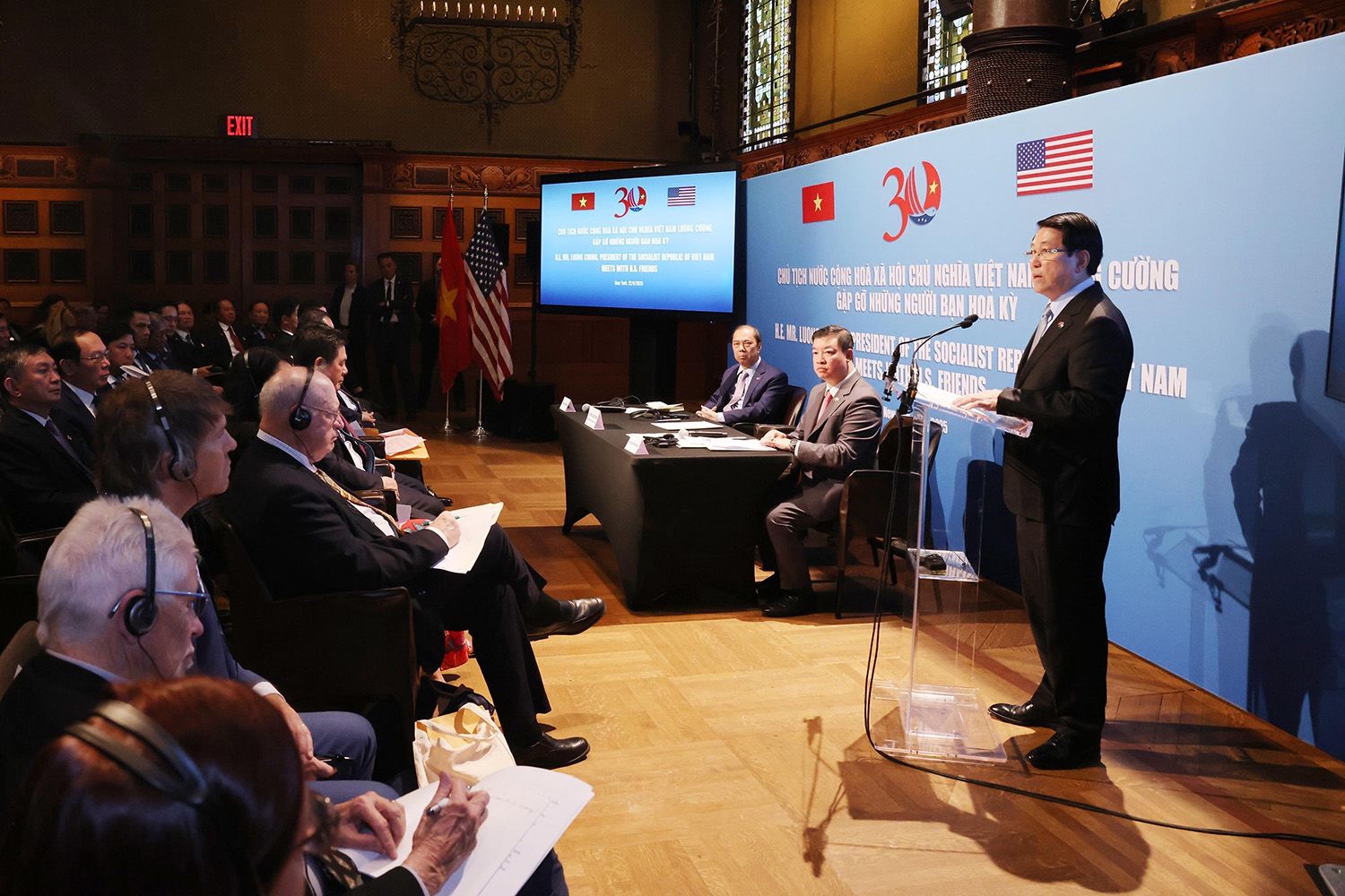 国家主席梁强还与长期友好伙伴及美国进步人士会面。此次会面吸引了来自美国多个州的友好人士代表。他们长期以来在越南争取民族独立与国家统一的斗争、战后重建、推动越美关系正常化与发展,以及当今建设和保卫国家的事业中,为越南作出了重要贡献。