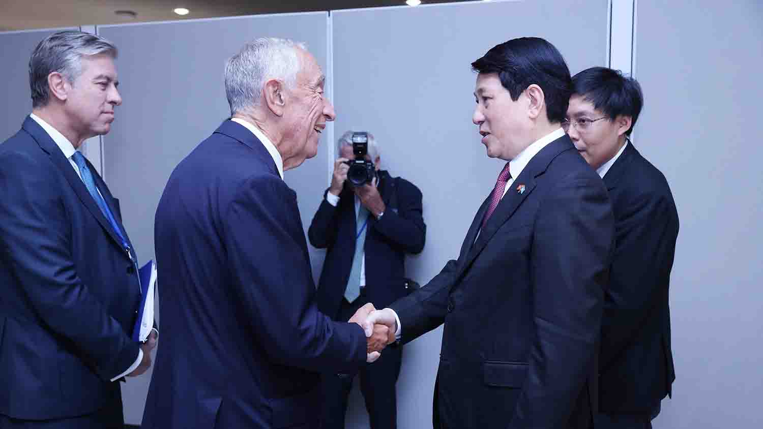 越南国家主席梁强会见葡萄牙总统马塞洛·雷贝洛·德索萨。(图片来源:越通社)