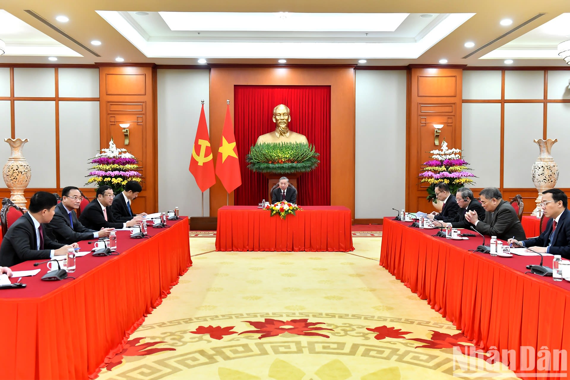 2024年12月20日,苏林总书记与新加坡共和国总理、新加坡人民行动党秘书长黄循财通电话。(登科 摄)