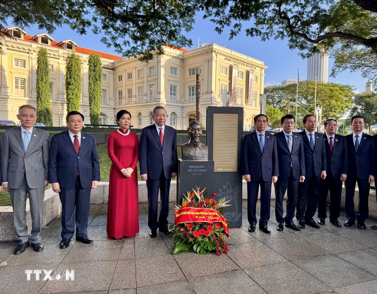 值此之际,苏林总书记偕夫人及越南高级代表团已前往亚洲文明博物馆里的胡志明主席纪念碑和雕像献花,缅怀胡志明主席。