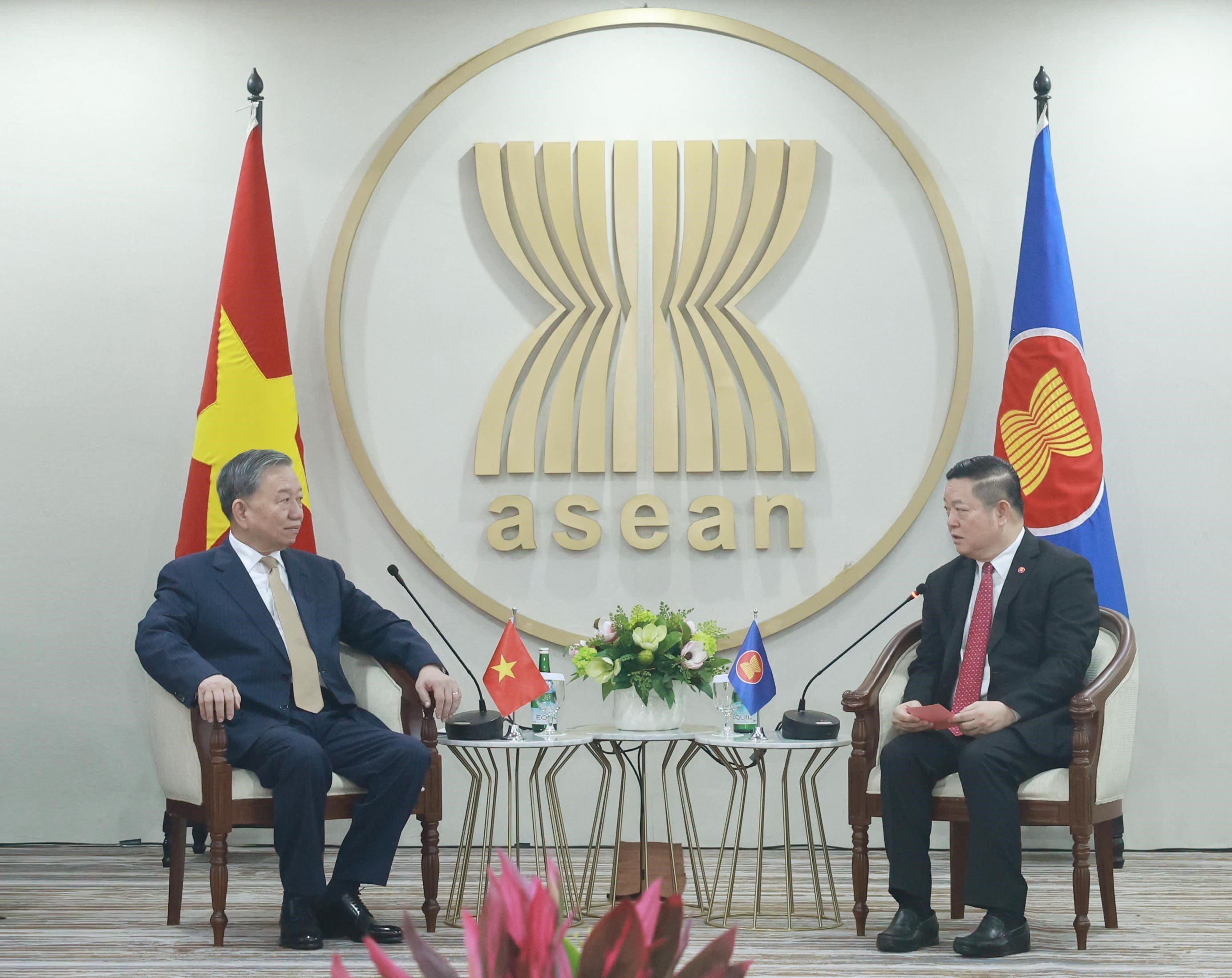 苏林总书记会见东盟秘书长高金洪。(图片来源:越通社)