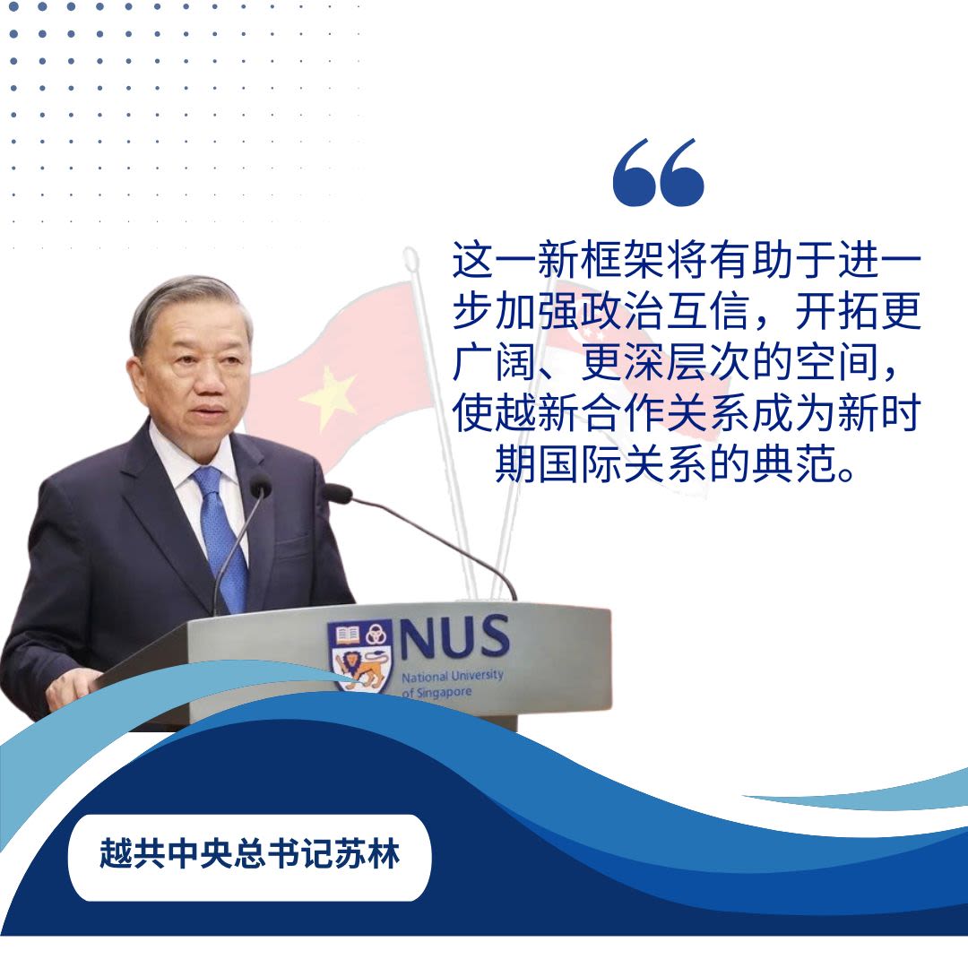 苏林总书记和黄循财总理一致认为,建立战略伙伴关系(2013年)和绿色经济-数字经济伙伴(2023年)已助推越新合作关系走深走实。两位领导一致同意将两国关系提升为全面战略伙伴关系。值得注意的是,这是新加坡与东盟国家建立的第一个全面战略伙伴关系。
