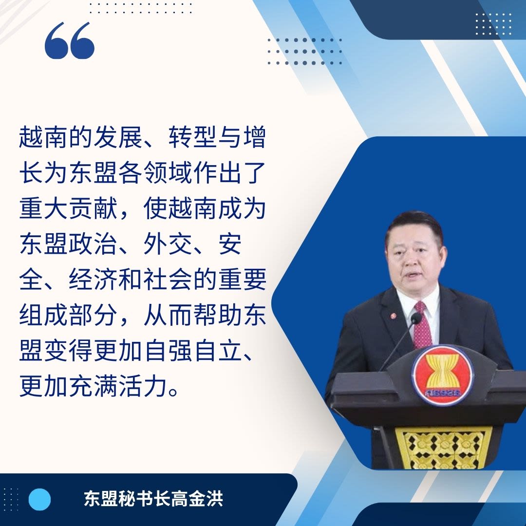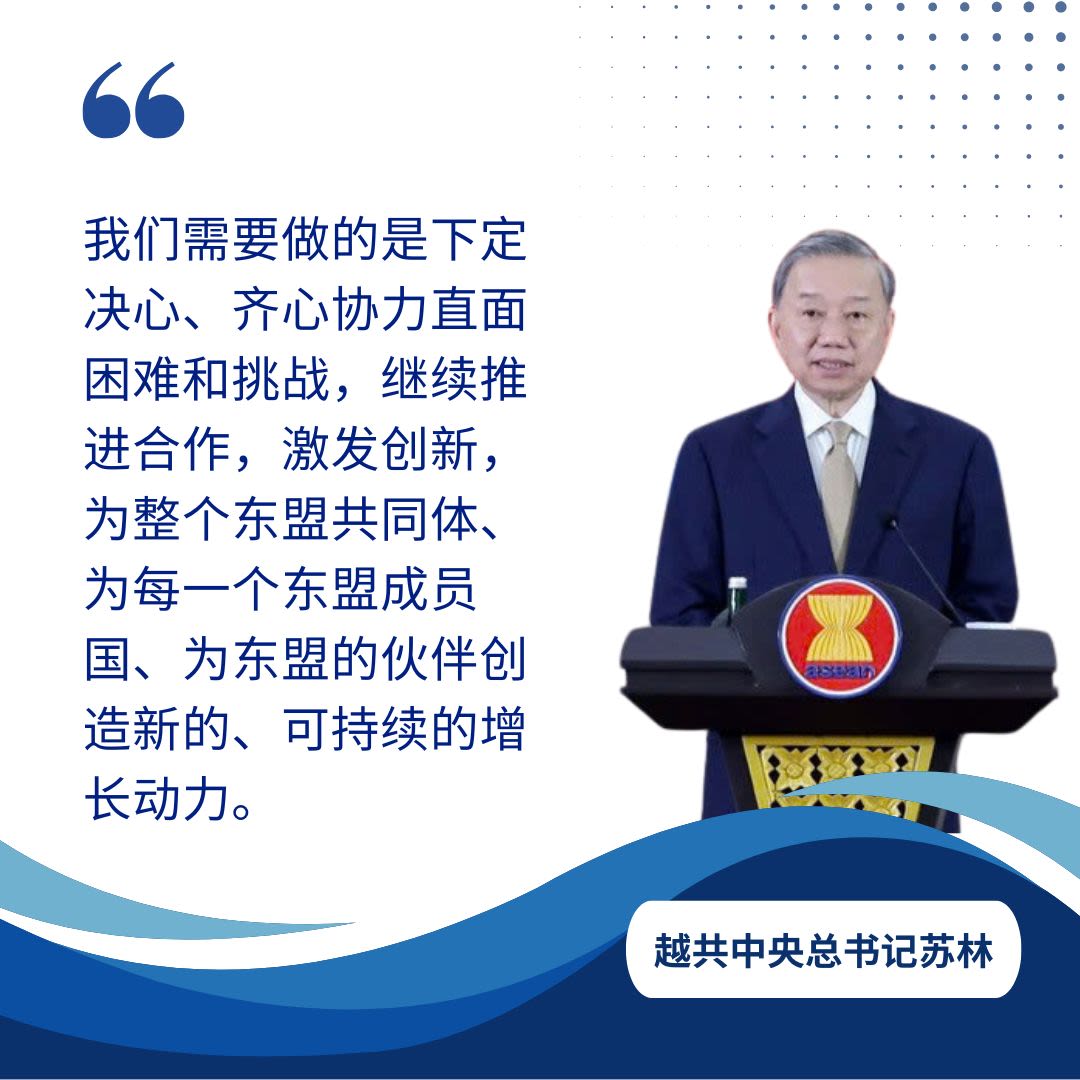 苏林总书记认为,如今东盟已成为多元一体的十国共同体,是增长速度最快的世界第五大经济体,是地区和全球互联互通进程的中心,是致力于地区和平与发展的对话、合作的桥梁,为塑造世界新秩序作出积极贡献。