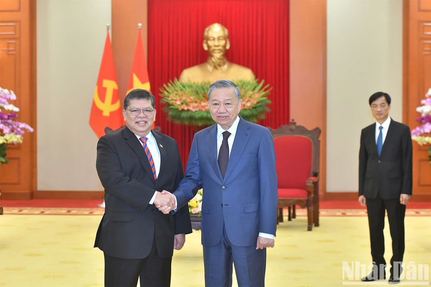 越共中央总书记苏林2024年10月24日会见马来西亚国会下议院议长佐哈里。
