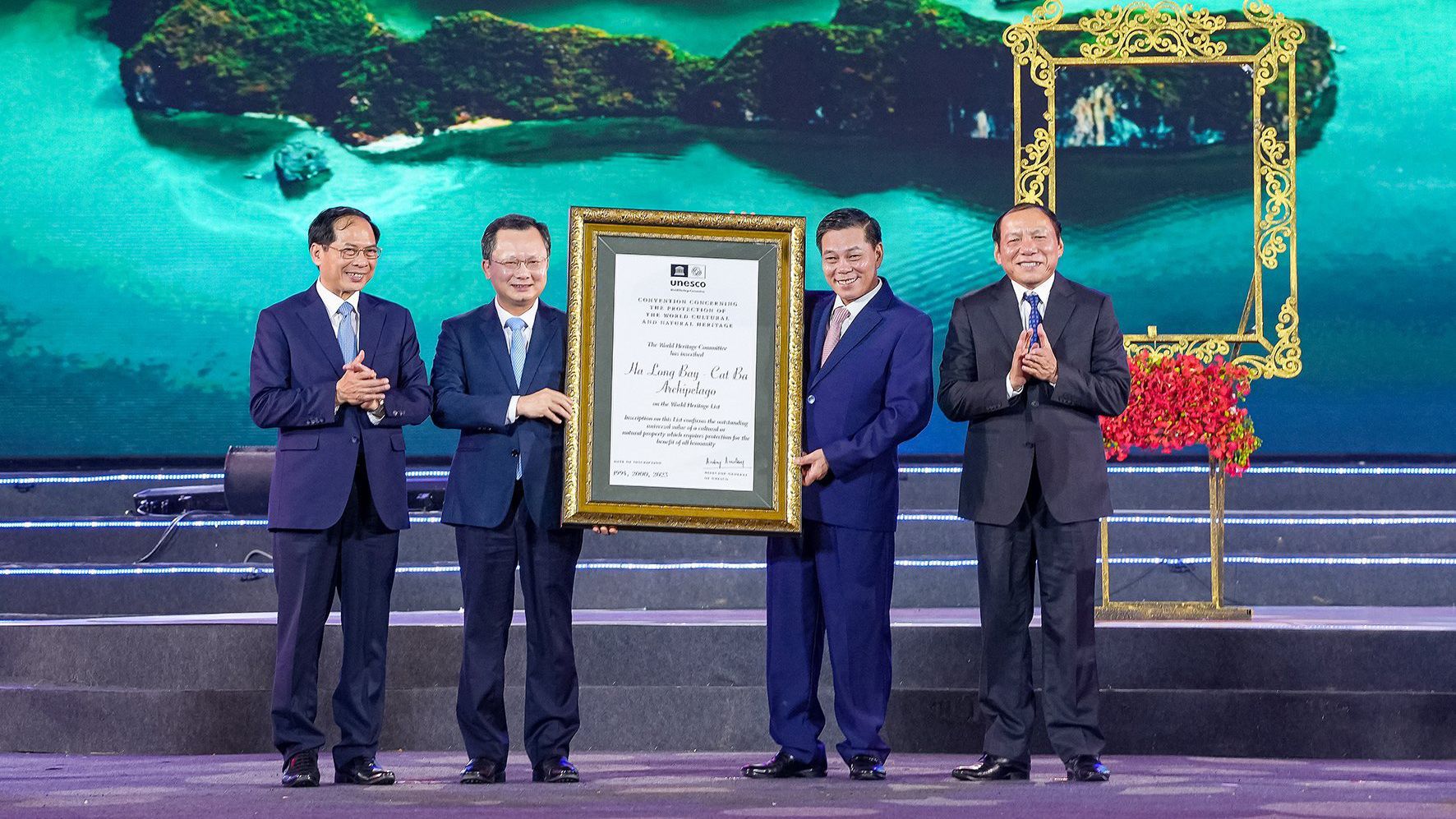 下龙湾-吉婆群岛荣获世界自然遗产证书的仪式。