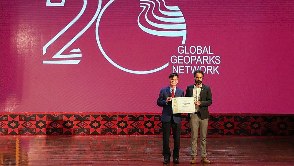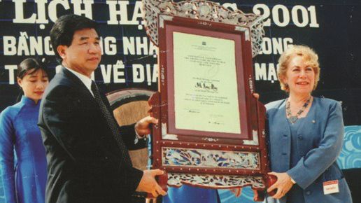 国际地质科学联合会颁发证书,公认下龙湾 - 吉婆群岛为国际地质遗产。