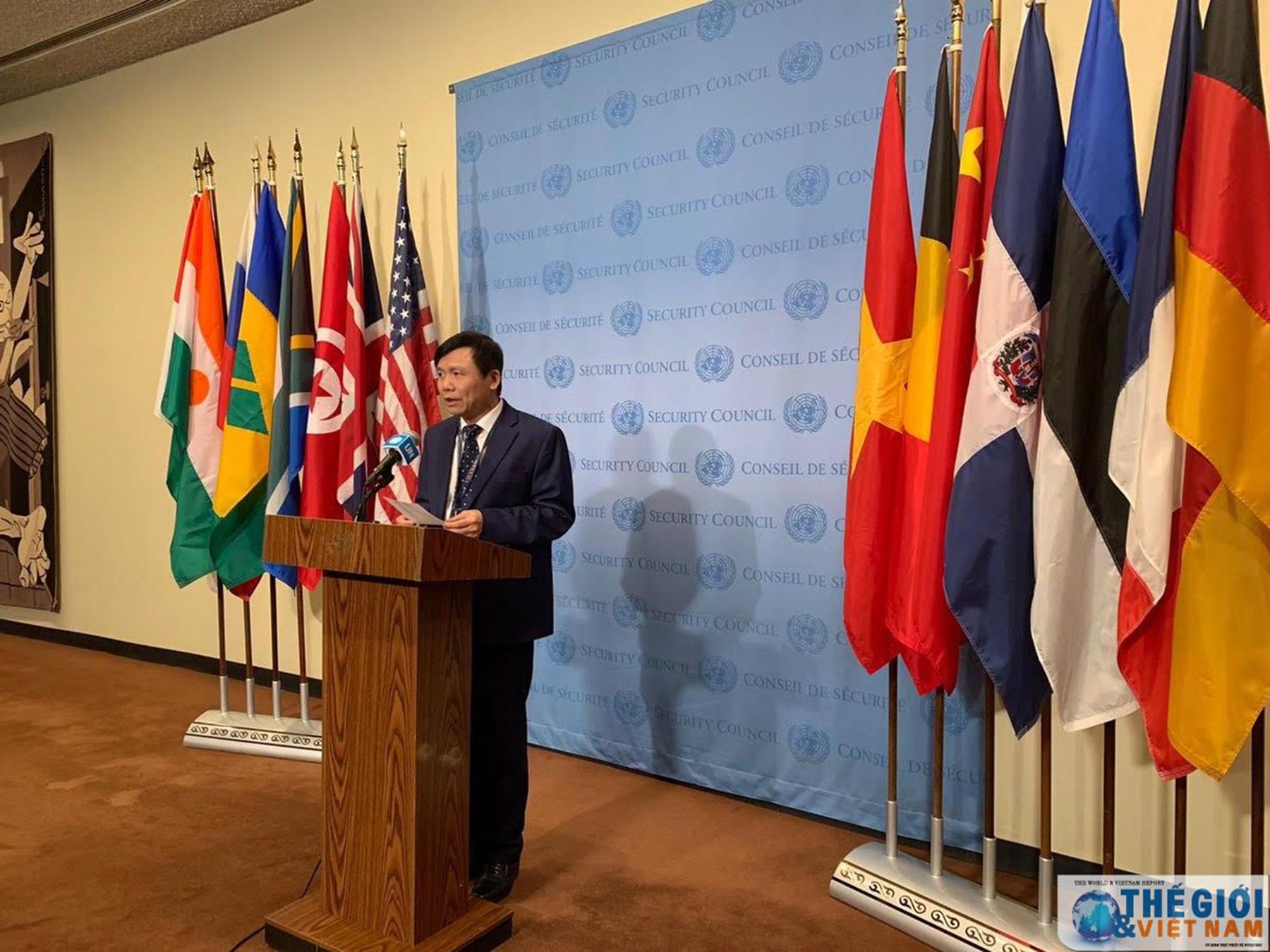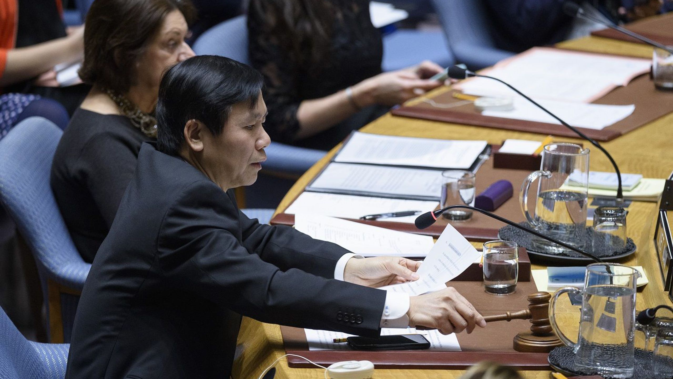 越南常驻联合国代表团团长邓廷贵大使主持联合国安理会的一场会议。(图片来源:世界与越南报)