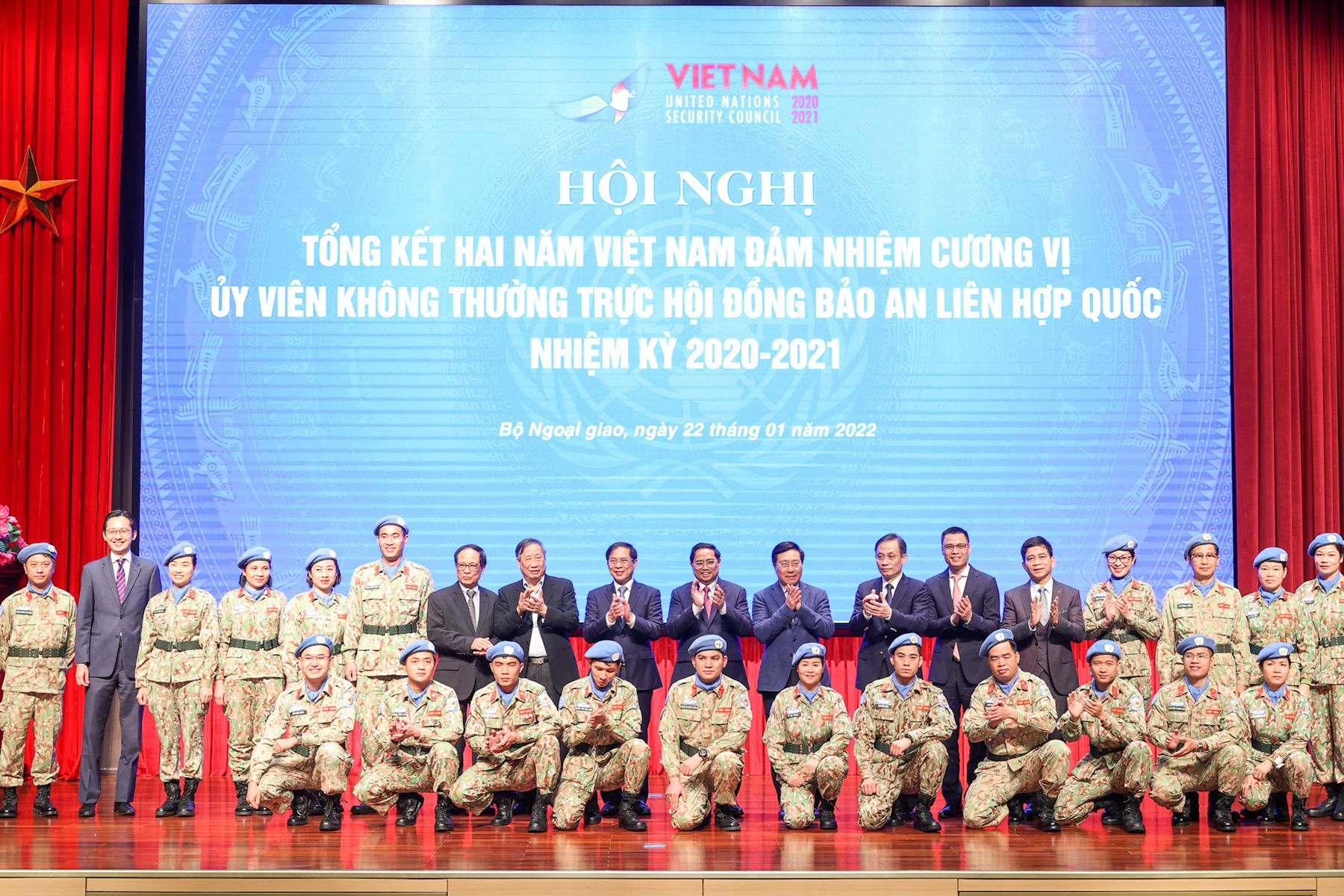 此外,越南与其他国家共同提倡关于维和人员安全问题(2020年3月)、新冠疫苗分配(2021年2月)、维和行动人员的安全保护问题(2021年8月)联合国维持和平特派团(2021年9月)冲突中教育(2021年10月)的五项决议;与印度尼西亚在联合国安理会上共同发表12篇联合讲话;2020年担任联合国安理会10个现任非常任理事国(E10)与5个新任安理会非常任理事国(I5)之间的年度会议主席国;参加气候变化的工作组,共同提倡有关气候变化的决议草案,2021年11月组织安全理事会关于南苏丹第2206号决议所设委员会主席的实地考察。