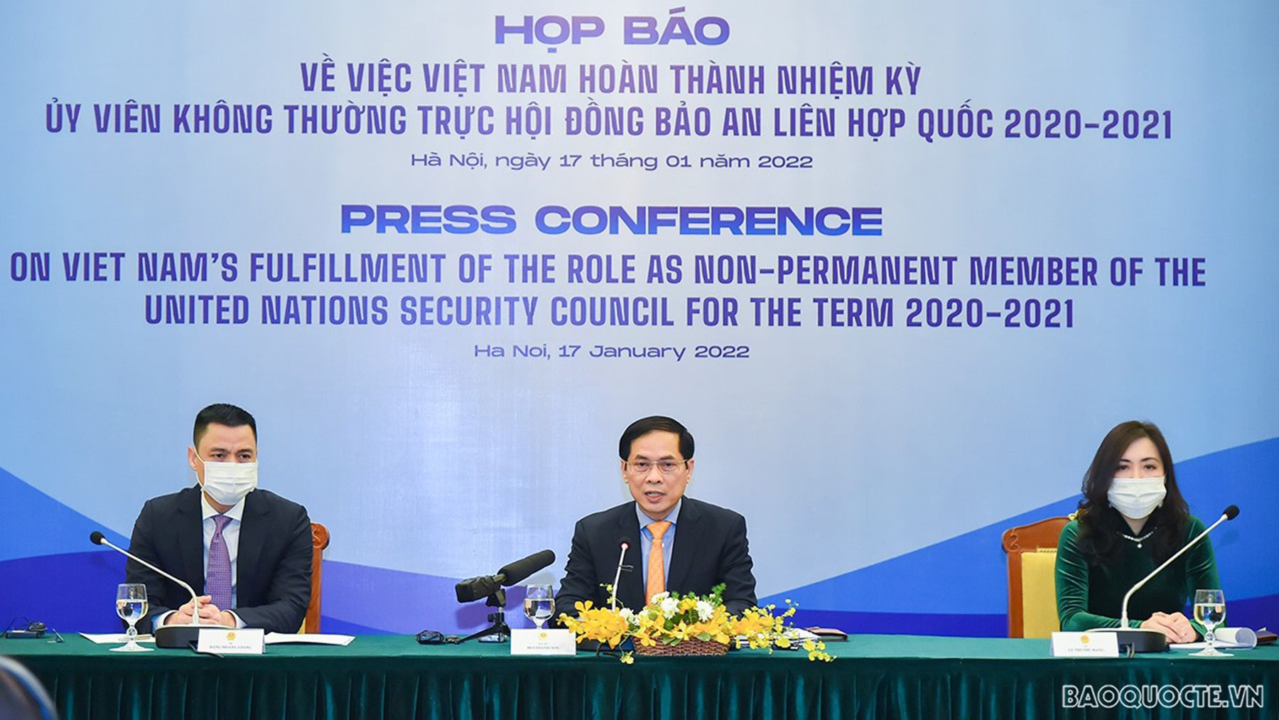 越南外交部部长裴青山2022年1月17日主持召开有关越南担任联合国2020年至2021年安理会非常任理事国的记者会。(图片来源:世界与越南报)