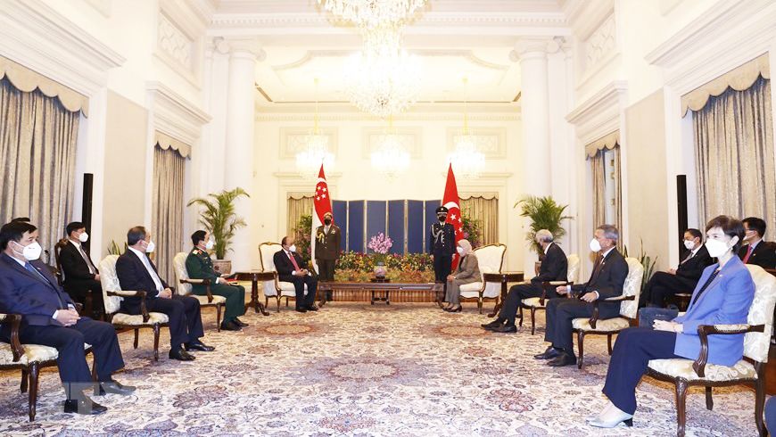(人民报)由越南国家主席阮春福率领的越南国家高级代表团日前圆满结束应新加坡共和国总统哈莉玛·雅各布之邀对新加坡进行的国事访问。阮春福主席的此访标志着越南和新加坡高层互访活动得到恢复,展现双方在加强战略伙伴关系及密切合作、面向后疫情时代共同复苏共同发展的强有力的承诺。