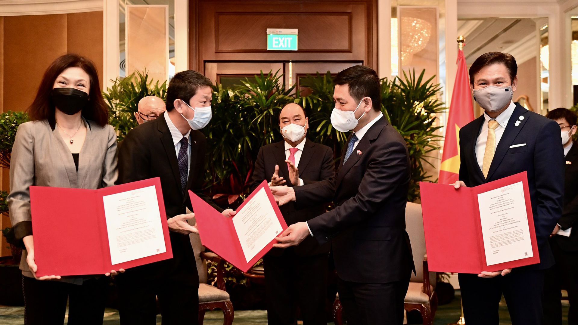 国家主席阮春福对越南和新加坡企业签署一系列合作协议表示祝贺。