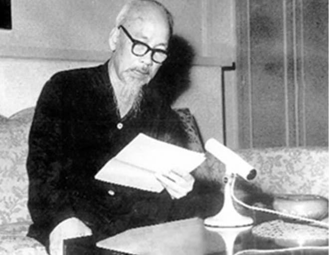 胡志明主席发出全国同胞和战士决心战胜美国侵略者的号召。他老人家重申:“没有什么比独立自由更可贵!”。1966年7月17日于河内。(资料图:越通社)
