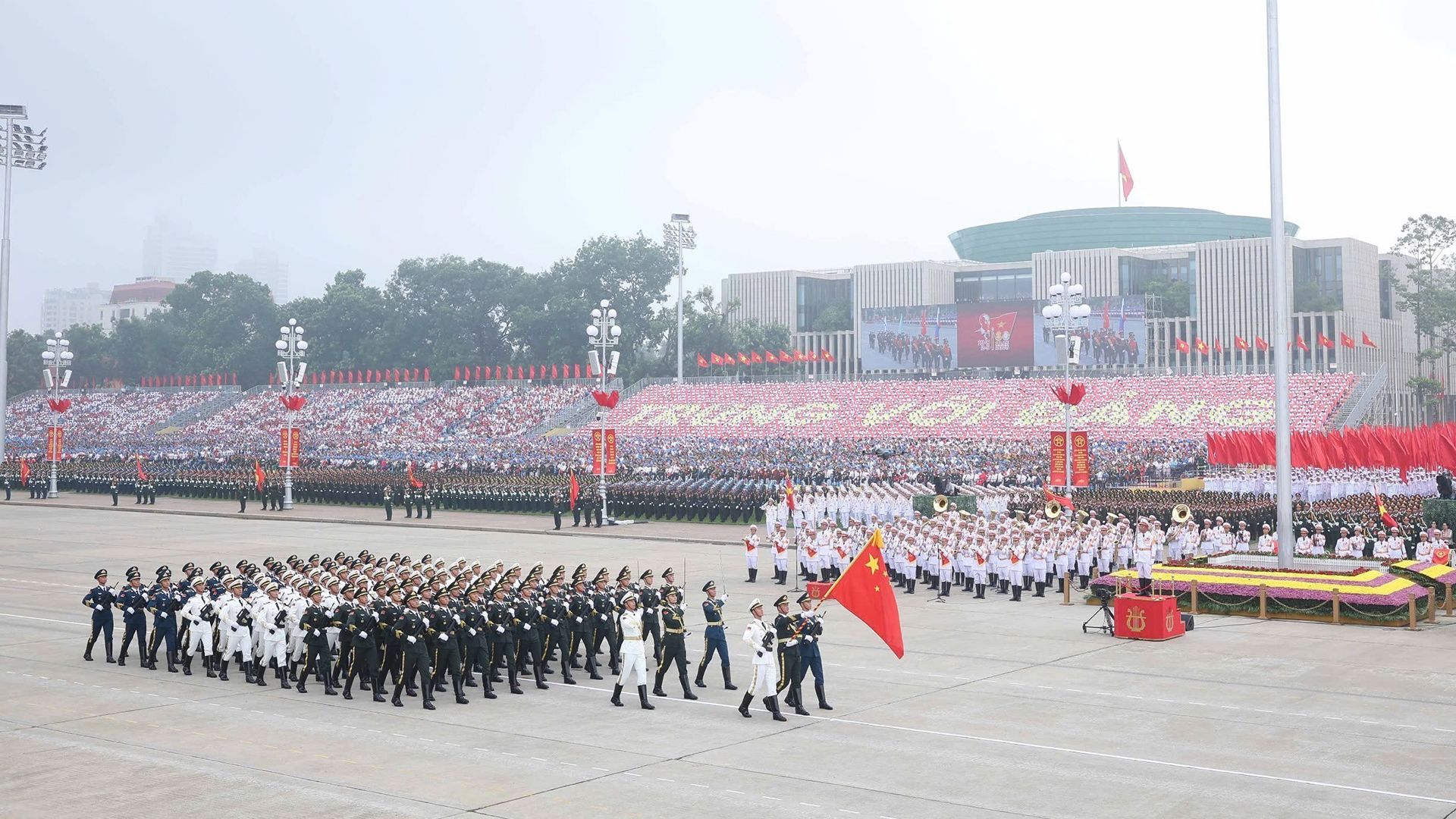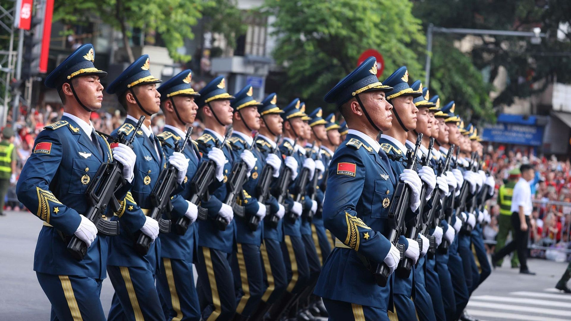 中国人民解放军方阵在纪念八月革命胜利和越南国庆80周年庆典。(图片来源:越通社)