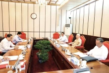6月10日上午,由越共中央总书记苏林率领的中央工作代表团在富寿省与富寿、永福、和平三省省委常务委员会举行工作会议,讨论近期越共中央各项决议和结论的落实情况;地方组织机构调整与整顿;国防与安全保障;经济增长任务的执行;社会保障工作的推进等。